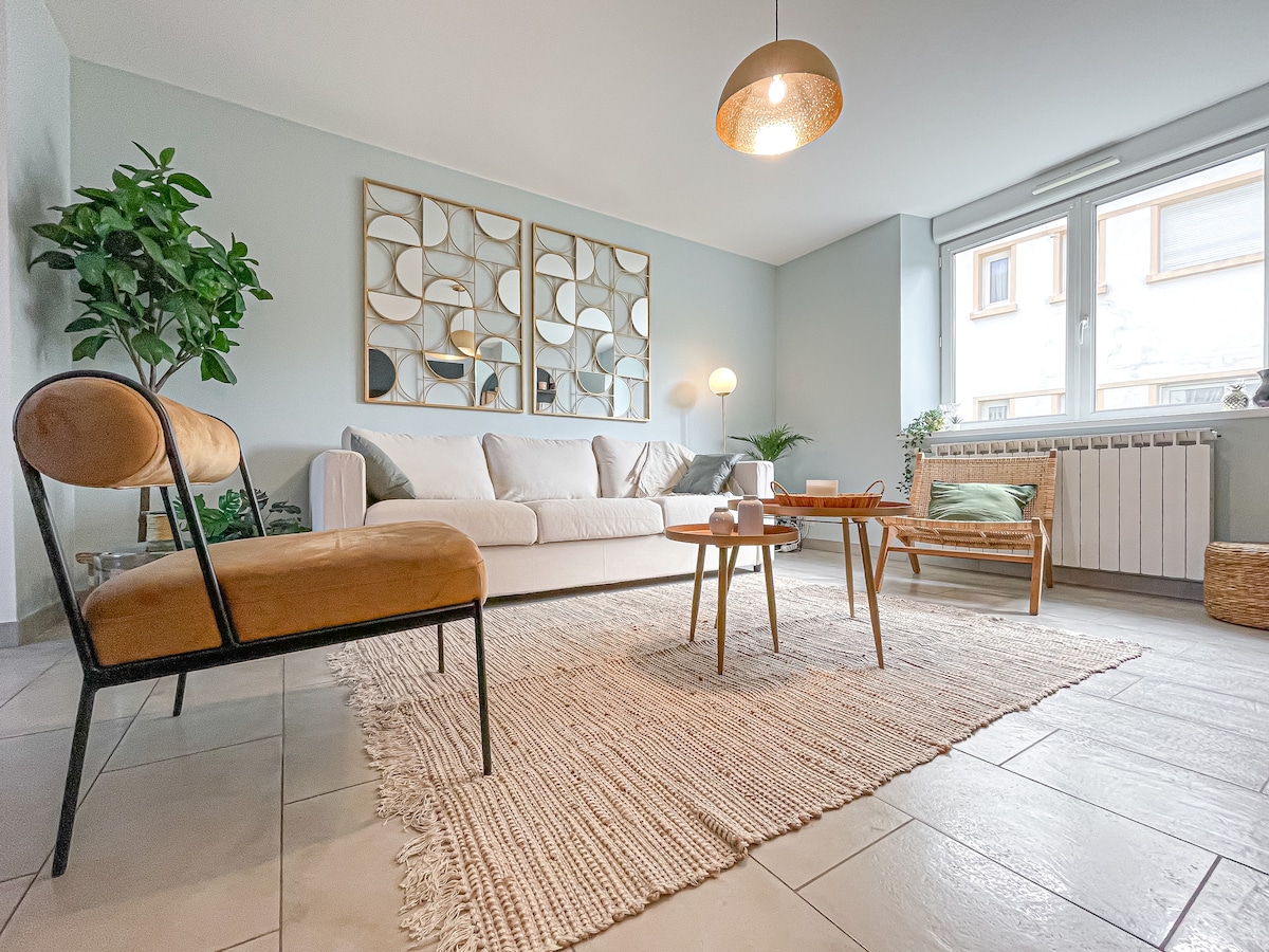 Chez Minouche Take a tour of one of the most loved homes on Airbnb 4.91 rating on Airbnb according to guests Airbnb Superhost Traveller Review Awards 2026: 9.4/10 Photo tour of the apartment Living Room Kitchen Dining Area Bedroom 1 Bedroom 2 Bedroom 3 Bathroom Living room Kitchen Dining area Bedroom 1 1 Queen Bed Bedroom 2 Bunk bed – Crib Bedroom 3 1 Queen Bed Bathroom